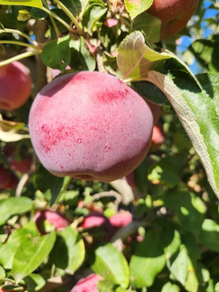 Empire is a medium sized McIntosh-Red Delicious cross just right for lunch or snack time. This crisp, sweet apple is also excellent for applesauce and juice.